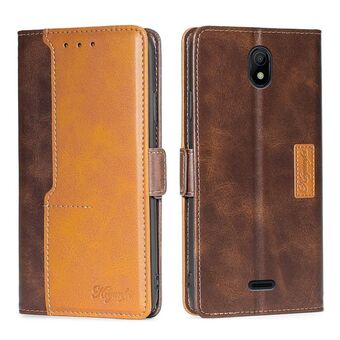 Για Nokia C200 Αντίθετο χρώμα πλευρά πόρπη δερμάτινη θήκη τηλεφώνου (σκούρο καφέ + χρυσό)