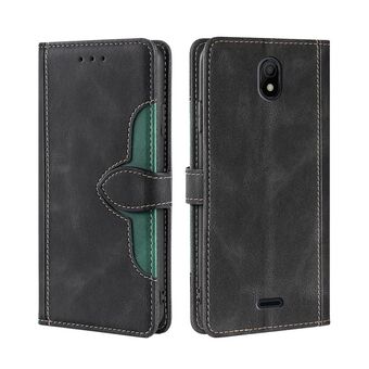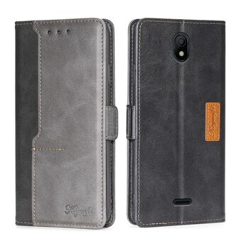 Για το Nokia C200 Αντίθετο χρώμα πλευρά πόρπη δερμάτινη θήκη τηλεφώνου (μαύρο + γκρι)