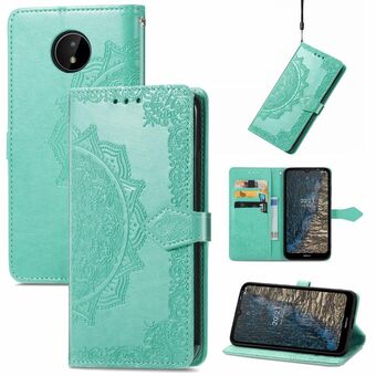 Για Nokia C20 Mandala ανάγλυφο μοτίβο οριζόντια Flip δερμάτινη θήκη με κάτοχο & υποδοχές για κάρτες & πορτοφόλι & κορδόνι (πράσινο)