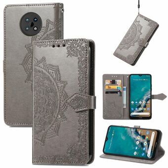 Για Nokia C20 Mandala ανάγλυφο μοτίβο οριζόντια Flip δερμάτινη θήκη με κάτοχο & υποδοχές για κάρτες & πορτοφόλι & κορδόνι (γκρι)