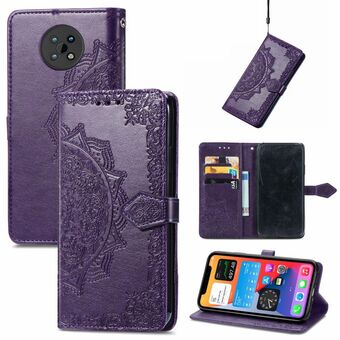 Για Nokia C20 Mandala ανάγλυφο μοτίβο οριζόντια Flip δερμάτινη θήκη με κάτοχο & υποδοχές για κάρτες & πορτοφόλι & κορδόνι (μωβ)