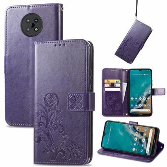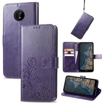 Για Nokia C20 Four-leaf Clasp ανάγλυφη δερμάτινη θήκη με κορδόνι & υποδοχή για κάρτες & πορτοφόλι & θήκη (μωβ)