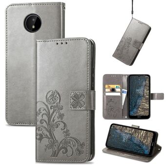 Για Nokia C20 Four-leaf Clasp ανάγλυφη δερμάτινη θήκη με κορδόνι & υποδοχή για κάρτες & πορτοφόλι & θήκη (γκρι)