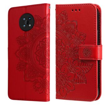 Για το Nokia G50 7-πέταλο λουλούδια ανάγλυφο Flip δερμάτινη θήκη τηλεφώνου με θήκη & υποδοχές για κάρτες (κόκκινο)