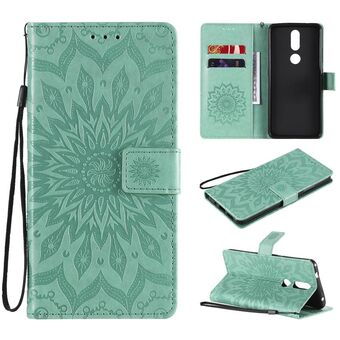 Για Nokia X10 Mandala λουλούδι ανάγλυφο οριζόντια Flip δερμάτινη θήκη με βραχίονα / υποδοχή για κάρτες / πορτοφόλι / κορδόνι (πράσινο)