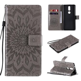 Για Nokia X10 Mandala λουλούδι ανάγλυφο οριζόντια Flip δερμάτινη θήκη με στήριγμα / υποδοχή για κάρτες / πορτοφόλι / κορδόνι (γκρι)