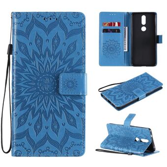 Για Nokia X10 Mandala λουλούδι ανάγλυφο οριζόντια Flip δερμάτινη θήκη με βραχίονα / υποδοχή για κάρτες / πορτοφόλι / κορδόνι (μπλε)