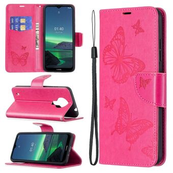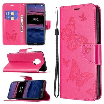 Για Nokia G20 / G10 Ανάγλυφο δύο πεταλούδες μοτίβο οριζόντια Flip PU δέρμα υπόθεση με θήκη & υποδοχή για κάρτες & πορτοφόλι & κορδόνι (Rose Red)