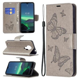 Για Nokia 1.4 Ανάγλυφο δύο πεταλούδες μοτίβο οριζόντια Flip PU δέρμα υπόθεση με κάτοχο & υποδοχή για κάρτες & πορτοφόλι & κορδόνι (γκρι)