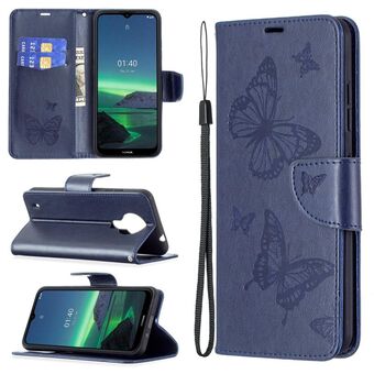 Για Nokia G20 / G10 Ανάγλυφο δύο πεταλούδες μοτίβο οριζόντια Flip PU δέρμα υπόθεση με θήκη & υποδοχή για κάρτες & πορτοφόλι & κορδόνι (σκούρο μπλε)