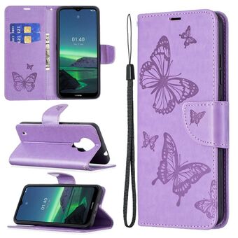 Για Nokia G20 / G10 Ανάγλυφο δύο πεταλούδες μοτίβο οριζόντια Flip PU δέρμα υπόθεση με θήκη & υποδοχή για κάρτες & πορτοφόλι & κορδόνι (μωβ)