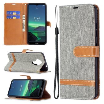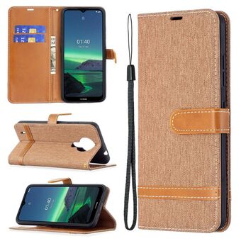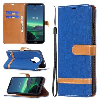 Για το Nokia 1.4 Χρώμα ταιριάζει Denim υφή οριζόντια Flip δερμάτινη θήκη με θήκη & υποδοχές για κάρτες & πορτοφόλι & κορδόνι (καφέ)