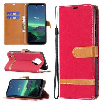 Για το Nokia 1.4 Χρώμα ταιριάζει με Denim Υφή οριζόντια Flip δερμάτινη θήκη με θήκη & υποδοχές για κάρτες & πορτοφόλι & κορδόνι (κόκκινο)