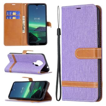 Για Nokia 1.4 Χρώμα ταιριάζουν Denim υφή οριζόντια Flip δερμάτινη θήκη με θήκη & υποδοχές για κάρτες & πορτοφόλι & κορδόνι (μωβ)