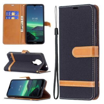 Για Nokia 1.4 Χρώμα ταιριάζει Denim υφή οριζόντια Flip δερμάτινη θήκη με θήκη & υποδοχές για κάρτες & πορτοφόλι & κορδόνι (Μαύρο)