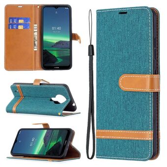 Για Nokia 1.4 Χρώμα ταιριάζει Denim υφή οριζόντια Flip δερμάτινη θήκη με θήκη & υποδοχές για κάρτες & πορτοφόλι & κορδόνι (πράσινο)