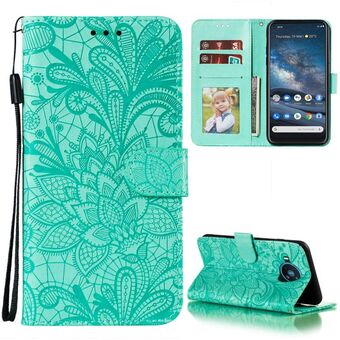 Για Nokia 8.3 5G Lace Flower ανάγλυφο μοτίβο οριζόντια Flip δερμάτινη θήκη με θήκη & υποδοχές για κάρτες & πορτοφόλι & πλαίσιο φωτογραφιών (πράσινο)