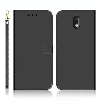 Για Nokia 2.2 Απομιμητική επιφάνεια καθρέφτη Οριζόντια Flip δερμάτινη θήκη με θήκη & υποδοχές για κάρτες & πορτοφόλι & κορδόνι (Μαύρο)