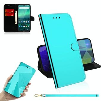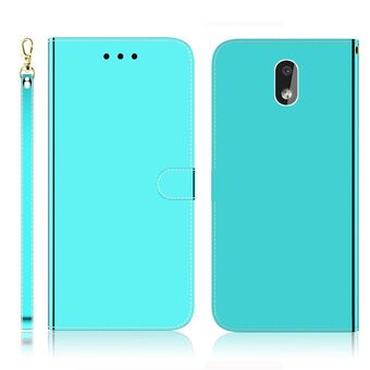 Για Nokia 2.2 Απομιμητική επιφάνεια καθρέφτη Οριζόντια Flip δερμάτινη θήκη με θήκη & υποδοχές για κάρτες & πορτοφόλι & κορδόνι (μπλε)