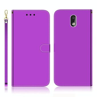 Για Nokia 2.2 Απομιμητική επιφάνεια καθρέφτη Οριζόντια Flip δερμάτινη θήκη με θήκη & υποδοχές για κάρτες & πορτοφόλι & κορδόνι (μωβ)