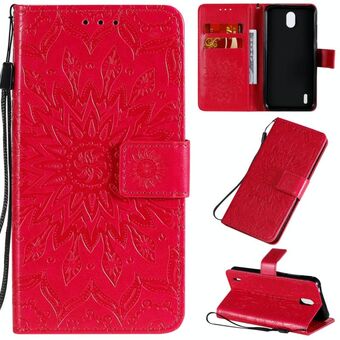 Για Nokia 1.3 Ανάγλυφο ηλιοτρόπιο μοτίβο οριζόντια Flip PU δέρμα υπόθεση με κάτοχο & υποδοχές για κάρτες & πορτοφόλι & κορδόνι (κόκκινο)