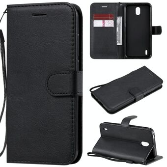 Για Nokia 1.3 Ρετρό δέρμα αρνί υφή καθαρό χρώμα οριζόντια Flip PU δέρμα υπόθεση με θήκη & υποδοχές για κάρτες & πορτοφόλι & κορδόνι (μαύρο)