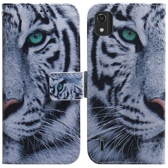 For Nokia C21 Coloured Drawing Leather Phone Case(Tiger)