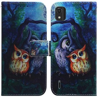 For Nokia C21 Coloured Drawing Leather Phone Case(Oil Painting Owl)