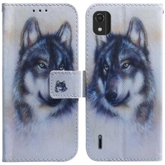 For Nokia C21 Coloured Drawing Leather Phone Case(White Wolf)