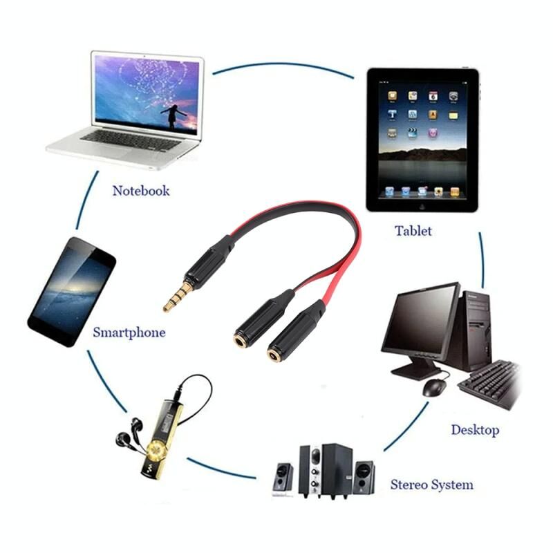Καλώδιο ήχου τύπου "Noodle" 3,5mm, ανδρικό σε 2 θηλυκά, διαχωριστής, συμβατό με τηλέφωνα, tablet, ακουστικά, MP3 player, στερεοφωνικά αυτοκινήτου/σπιτιού και άλλα.