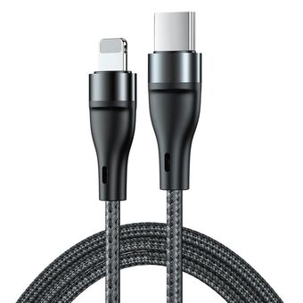 Καλώδιο δεδομένων USB-C / Type-C σε 8 ακίδες PD με γρήγορη φόρτιση, πλεγμένο, για iPhone, iPad, Μήκος: 1m (Μαύρο)
