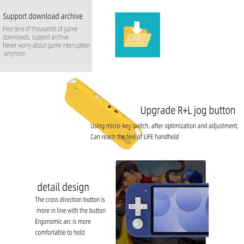 13. Built-in customized arcade chip, built-in 10 emulator games support: 128-bit 64-bit arcade games, 32-bit GBA, 16-bit MD, 8-bit FC, NES games
