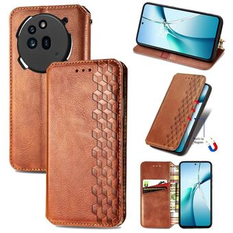 For Nothing Phone 3a Pro Cubic Grid Pressed Magnetic Leather Phone Case(Brown)
