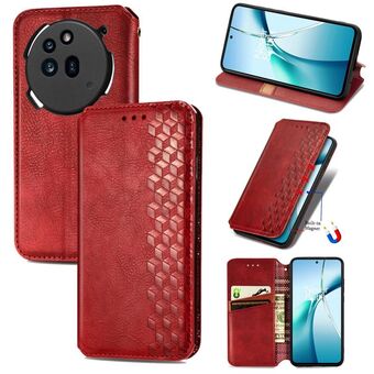 For Nothing Phone 3a Pro Cubic Grid Pressed Magnetic Leather Phone Case(Red)