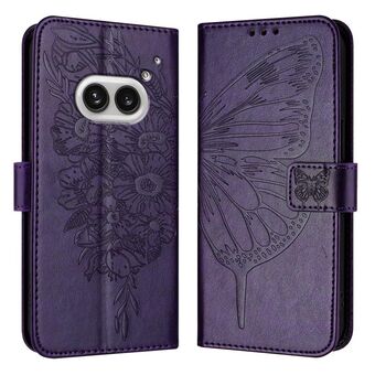 Για τίποτα τηλέφωνο 2a ανάγλυφη πεταλούδα δερμάτινη θήκη τηλεφώνου (σκούρο μοβ)