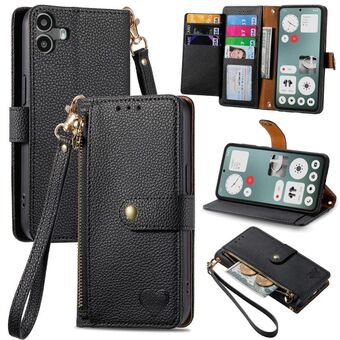 Για τίποτα CMF τηλέφωνο 1 αγάπη φερμουάρ Lanyard φερμουάρ δερμάτινη θήκη τηλεφώνου (μαύρο)