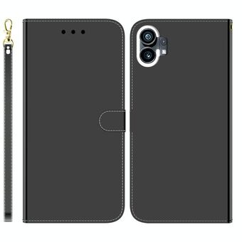 Για Τίποτα τηλέφωνο 1 απομιμητικό καθρέφτη επιφάνεια Flip δέρμα τηλέφωνο υπόθεση (Μαύρο)