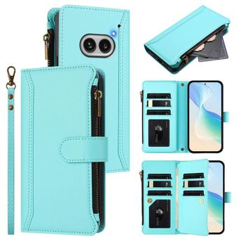 For Nothing Phone 3a Magnetic Closure 9 Card Slots Zipper Leather Case with Hand Strap(Turquoise)