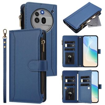 For Nothing Phone 3a Pro Magnetic Closure 9 Card Slots Zipper Leather Case with Hand Strap(Dark Blue)