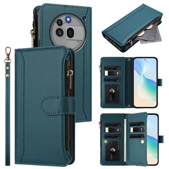 For Nothing Phone 3a Magnetic Closure 9 Card Slots Zipper Leather Case with Hand Strap(Mint Green)