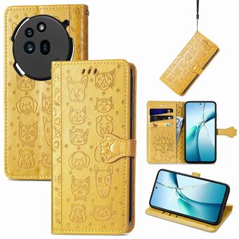 For Nothing Phone 3a Pro Cat and Dog Embossed Leather Phone Case(Yellow)