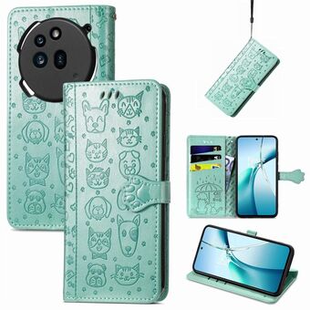For Nothing Phone 3a Pro Cat and Dog Embossed Leather Phone Case(Green)