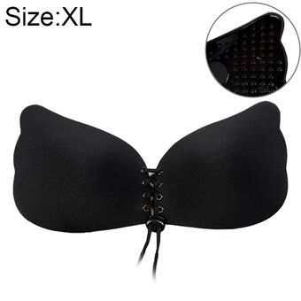Γυναίκες αυτοκόλλητο Strapless Bandage Blackless Solid Bra σιλικόνης εσώρουχα αόρατο σουτιέν, μέγεθος: XL (T Μαύρο)