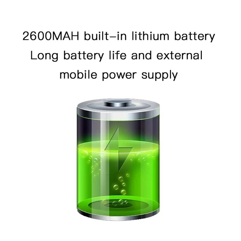 9. 2600mAh built-in lithium battery, long battery life, can be connected to the mobile power supply