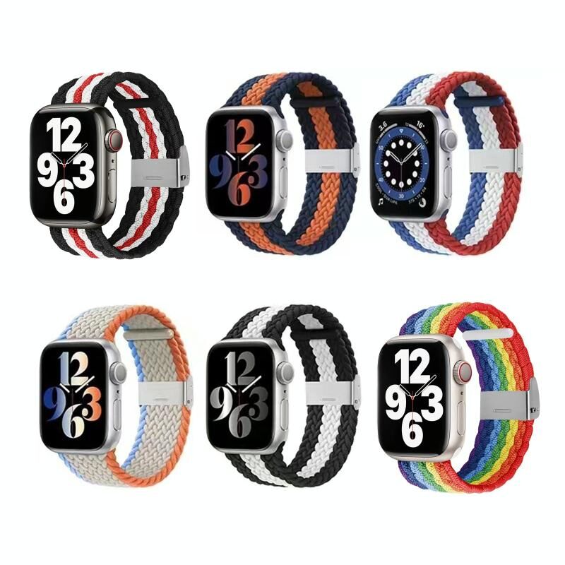 Λουρί ρολογιού πλεγμένο από νάιλον για Apple Watch Series 9&8&7 41mm / SE 3&SE 2&6&SE&5&4 40mm / 3&2&1 38mm (Μαύρο Λευκό)