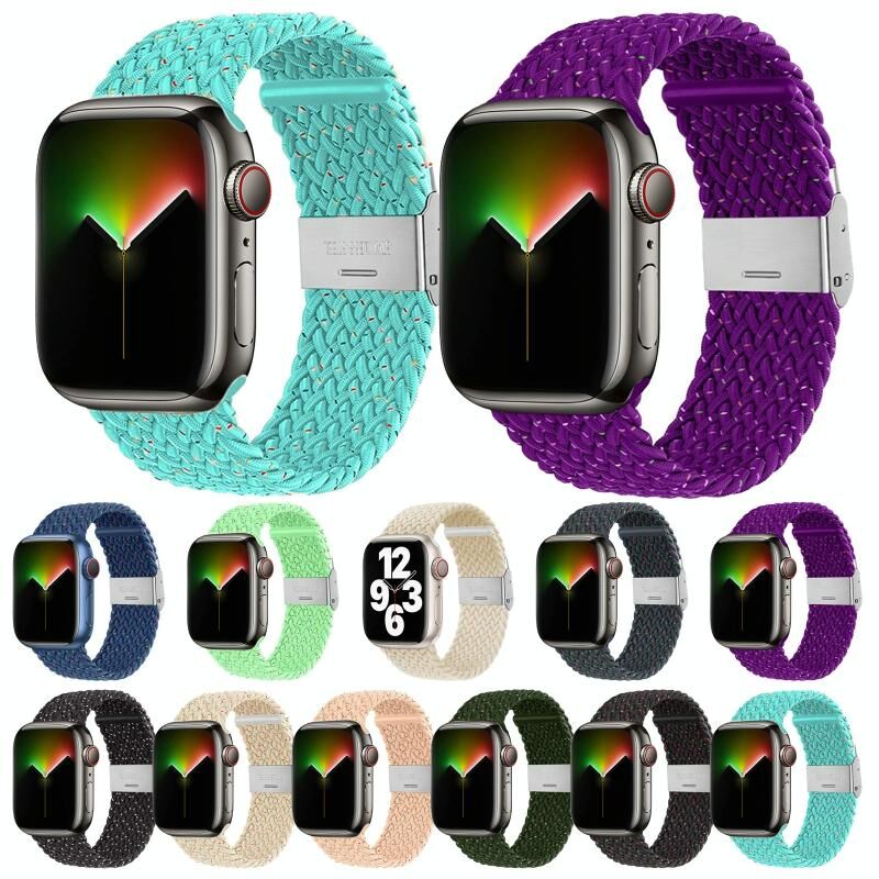 Λουρί ρολογιού πλεγμένο από νάιλον για Apple Watch Series 9&8&7 41mm / SE 3&SE 2&6&SE&5&4 40mm / 3&2&1 38mm (Μαύρο Αστέρι)