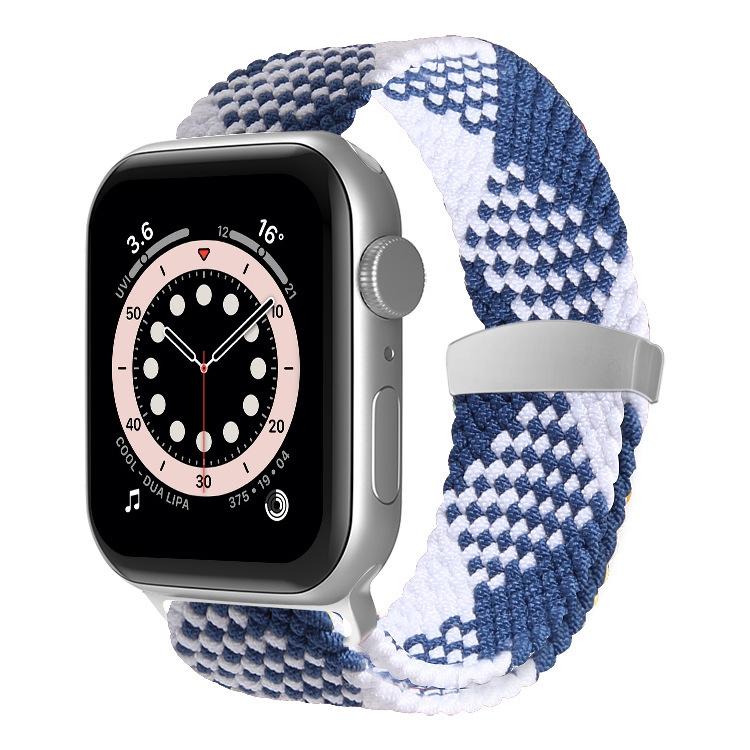 Λουρί ρολογιού πλεγμένο από νάιλον για Apple Watch Ultra 49mm & Watch Ultra 2 49mm / Series 9 & 8 & 7 45mm / SE 3 & SE 2 & 6 & SE & 5 & 4 44mm / 3 & 2 & 1 42mm (Μπλε + Λευκό)