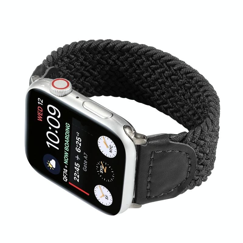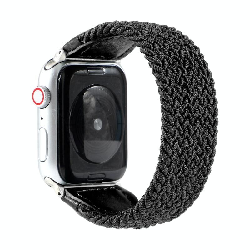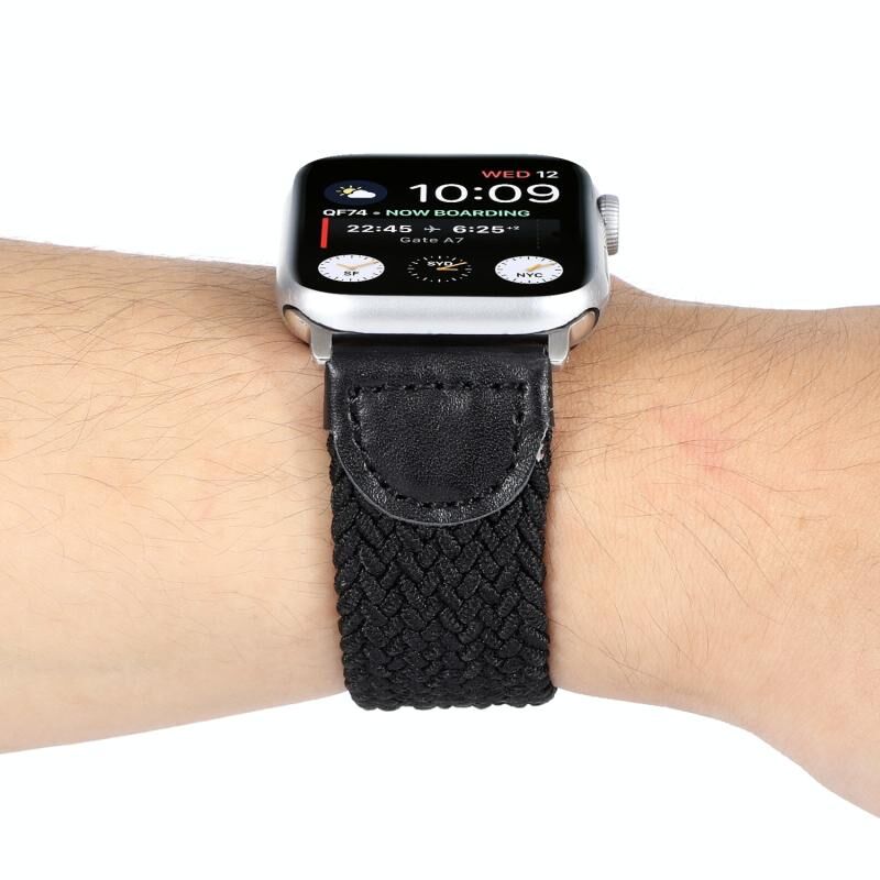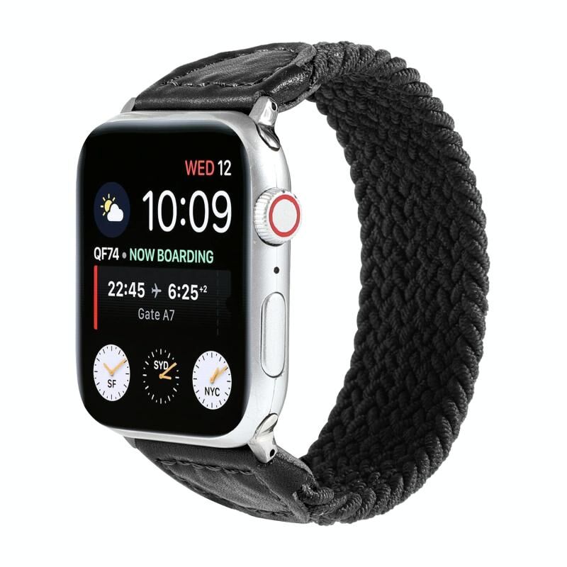 Λουρί ρολογιού πλεγμένο από νάιλον και δέρμα για Apple Watch Ultra 49mm & Watch Ultra 2 49mm / Series 9 & 8 & 7 45mm / SE 3 & SE 2 & 6 & SE & 5 & 4 44mm / 3 & 2 & 1 42mm, Μέγεθος: S (Μαύρο)