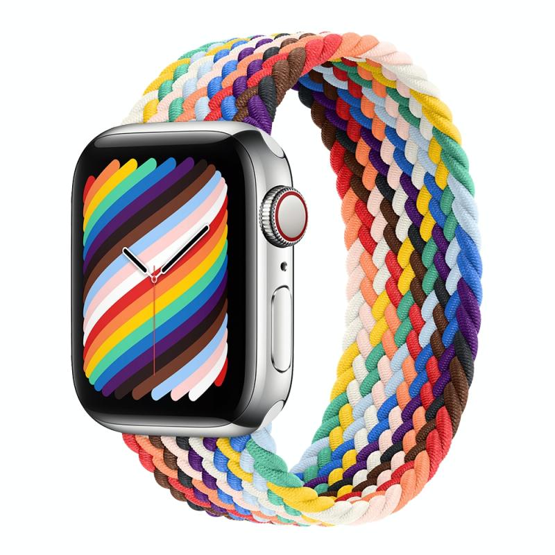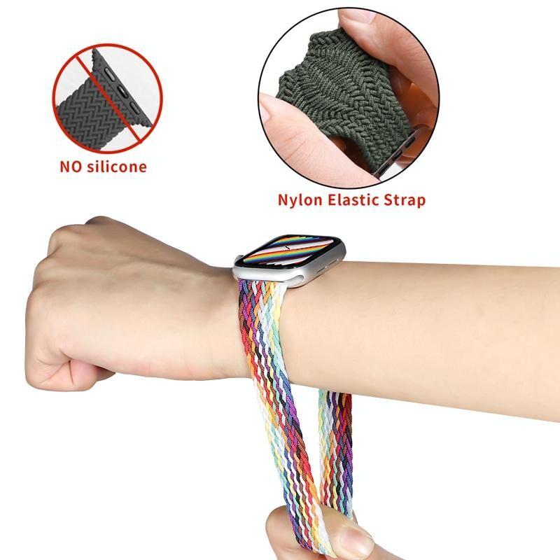 Λουρί ρολογιού πλεγμένο από νάιλον μονής στροφής για Apple Watch Series 8&7 41mm / SE 2&6&SE&5&4 40mm / 3&2&1 38mm, Μήκος: 135mm (Ουράνιο Τόξο)