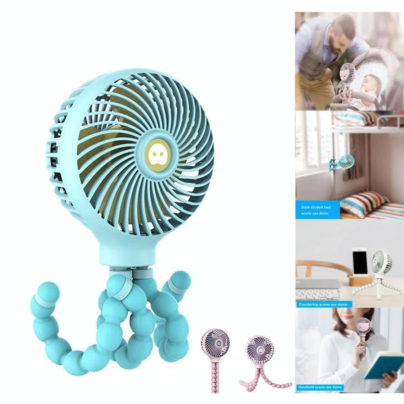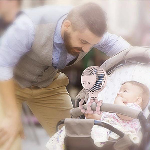 Ανεμιστήρας Χεριού Μίνι, Πτυσσόμενος, USB, Φορτιζόμενος, Σχέδιο Χταποδιού (Ροζ)